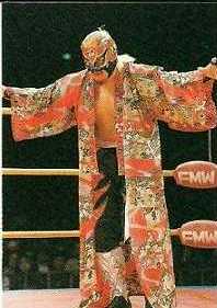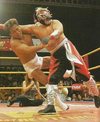 Tetsuhiro Kuroda would earn the right at Kodo Fuyuki's WEW World Title after defeating Kintaro Kanemura on March 13, 2001 at Korakuen Hall, with the show drawing the lowest show ever for FMW, it a low moment for FMW, but it would not look dark as Masashi Honda for no reason out of nowhere, would return wearing a masked that the Masked Sumo had worn in FMW, and would attack Kintaro Kanemura and nail the Fire Thunder on Kanemura. An incredibly bloody Kuroda would defeat Kanemura with the Technan Buster and earn the shot at Kodo Fuyuki's WEW World Title on April 1, 2001.