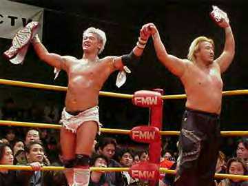 Mr. Gannosuke & Mammoth Sasaki would be given a shot once again for the WEW Tag Team Titles against GOEMON & Onryo on September 5, 2001 at once again the Sapporo Green Dome. GOEMON & Onryo would attack Senmu Yoshida right away in the match who was brought with by Mammoth. Gannosuke would attack GOEMON, but GOEMON would put Gannosuke in the Gannosuke Clutch right away for a two count. GOEMON would hit Gannosuke with a Tiger Driver, but then Gannosuke would follow up by flipping GOEMON on his back and tagging in Mammoth. Gannosuke would come back in and hit Onryo with a Riki Choshu Lariat, followed with the Scorpion Death Lock. Senmu Yoshida's daughter who would be Onryo's girlfriend would rush to the ring, but as a result, she would be countered by Mammoth and her father Senmu while GOEMON & Onryo would begin double teaming Gannosuke. Onryo would quickly try to make the save for his girlfriend by diving off the apron and hitting a flying hurricanrana on Mammoth, while Senmu would grab his daughter and take off. Gannosuke would be left with GOEMON, who would hit him with an Exploder, and tag in Onryo. Gannosuke would manage to over power Onryo, and hit Onryo with a Fire Thunder, but Onryo would manage to grab the referee's hand in time before the three count. Gannosuke would tag in Mammoth, who would try to go for the finish, but just like the last time the two teams fought, Onryo would manage to kick Mammoth's leg out from under him, and put him in the Onryo Clutch, but this time Mammoth would kick out. Onryo would try it again, but Mammoth would overpower Onryo and grab him by Mammoth's shoulder and drop him. Mammoth would then hit a Chokeslam on Onryo and manage to pin him to make Mr. Gannosuke & Mammoth Sasaki, the new WEW Tag Team Champions. For that bright shining moment, Fuyuki's group was back in power in FMW by holding the WEW World Title, the WEW Tag Team Titles, and the WEW 6 Man Tag Team Titles. It wouldn't last long though, as Hayabusa would manage to defeat Kintaro Kanemura in the main event of the show for the WEW World Title.